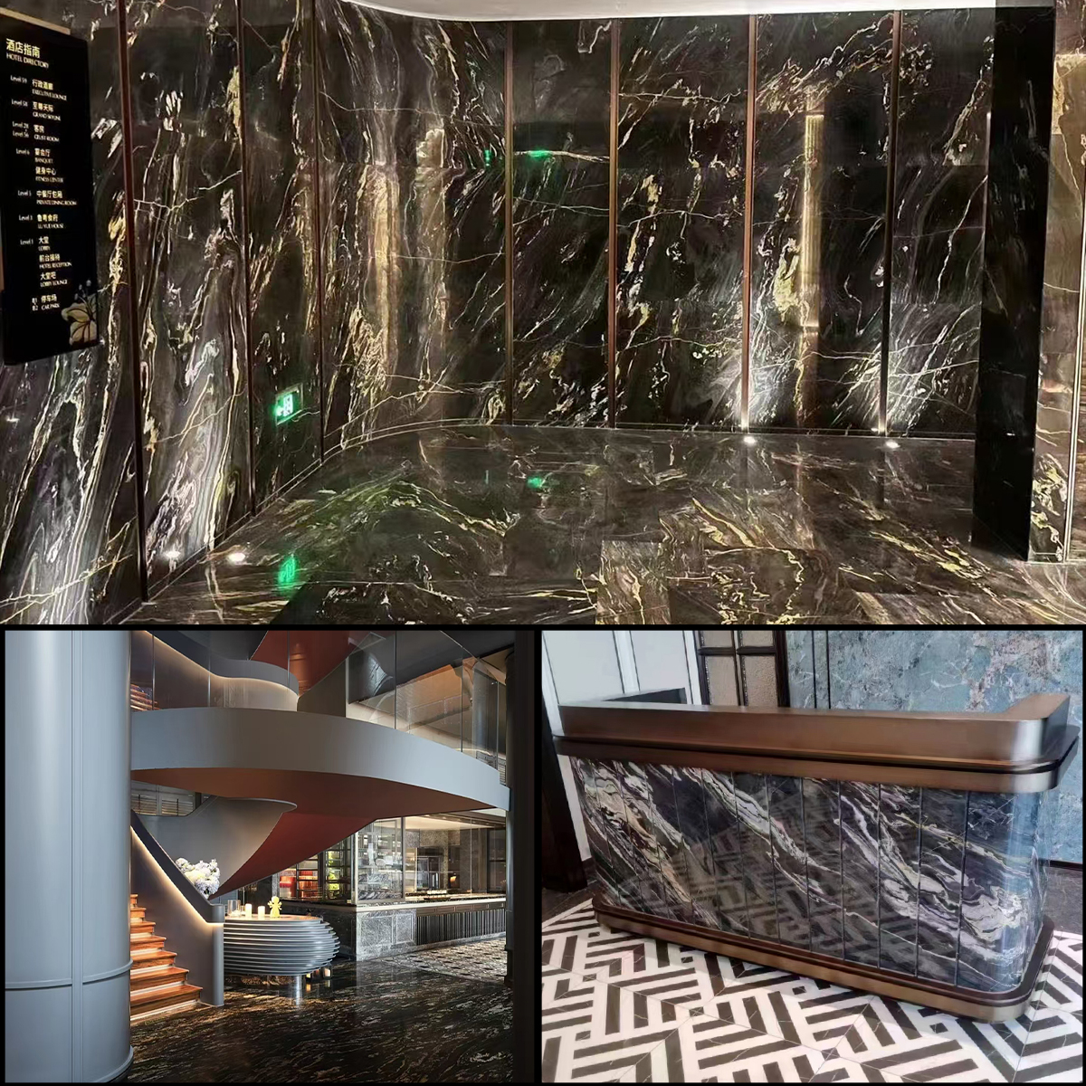 Elegant Italy Black Glod Marble For Kitchen Countertop Home Furniture Floor Tiles Hotel Lobby Decor