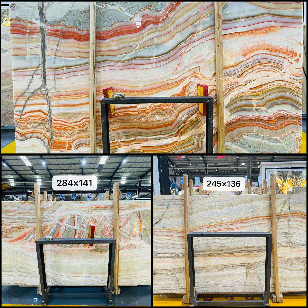 Luxury Natural Colorful Onyx Slab With Beige Veins For Luxury Villa Floor Tiles Wall Background Kitchen Countertop Staircase Hotel Lobby House Decoration Handcrafts