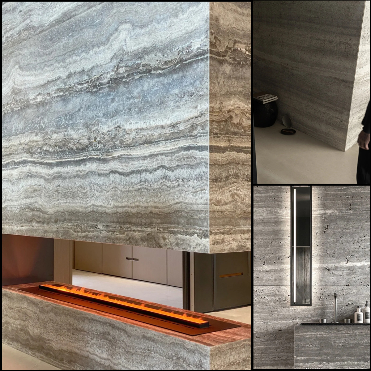 Wabi-sabi Style Italy Sliver Grey Travertine Salb For Wash Basin Wall Panel Floor Tiles Livingroom Decoration Kitchen Island Countertop