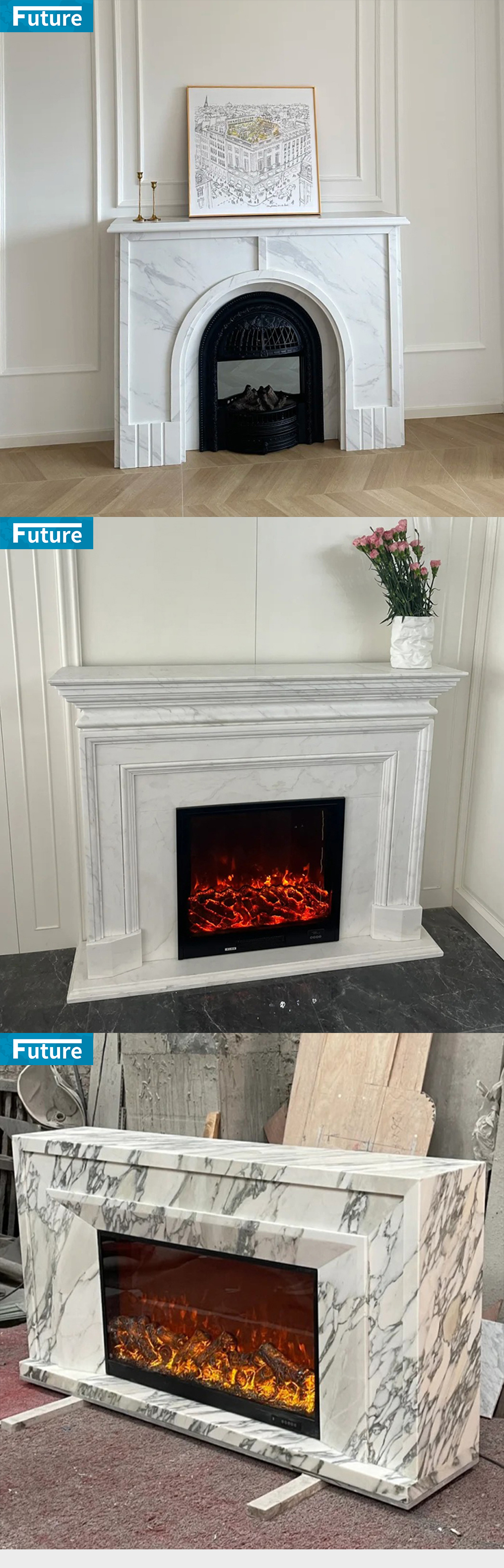 Living Room Customized Marble Mantel Modern Style Marble Fireplace Surround Marble Fireplace Made by Block Slabs