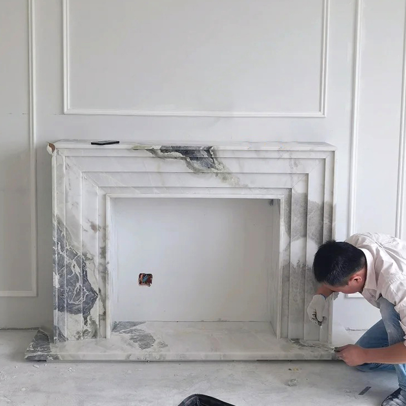 Luxury Style Indoor Wood Burning Natural Stone Ctaved A Grade Carrara White Marble Fireplace Mantel for Hotel Villa Decor